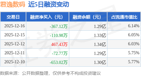 证券之星消息,12月16日,君逸数码(301172)融资买入712.15万元,融资偿还1079.26万元,融资净卖出367.12万元,融资余额1.29亿元。