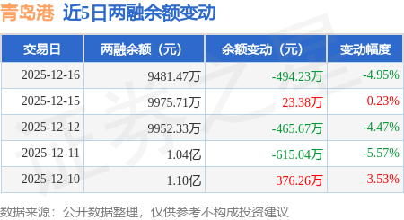 证券之星消息,12月16日,青岛港(601298)融资买入666.71万元,融资偿还1169.32万元,融资净卖出502.61万元,融资余额9467.22万元。