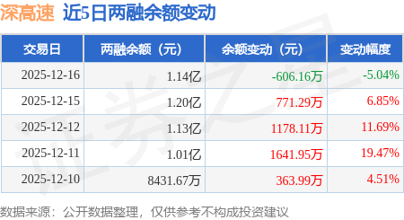 证券之星消息,12月16日,深高速(600548)融资买入1226.84万元,融资偿还1835.4万元,融资净卖出608.56万元,融资余额1.14亿元,近20个交易日中有13个交易日出现融资净买入。