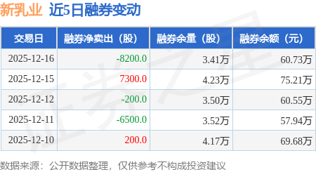 证券之星消息,12月16日,新乳业(002946)融资买入552.93万元,融资偿还1242.81万元,融资净卖出689.88万元,融资余额4044.6万元,近20个交易日中有11个交易日出现融资净买入。