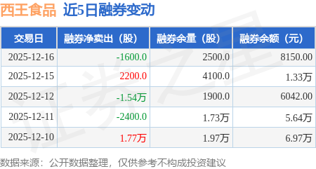 证券之星消息,12月16日,西王食品(000639)融资买入2772.74万元,融资偿还3558.29万元,融资净卖出785.55万元,融资余额2.38亿元。