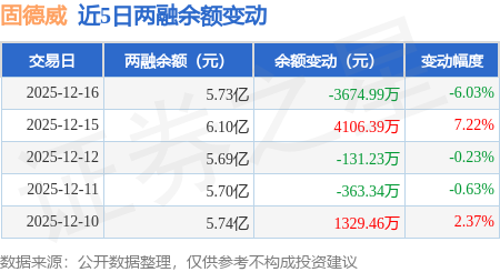 证券之星消息,12月16日,固德威(688390)融资买入3974.52万元,融资偿还7636.44万元,融资净卖出3661.92万元,融资余额5.72亿元,近20个交易日中有11个交易日出现融资净买入。
