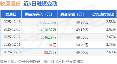 证券之星消息,12月16日,牧原股份(002714)融资买入3766.58万元,融资偿还1.24亿元,融资净卖出8651.1万元,融资余额48.28亿元。