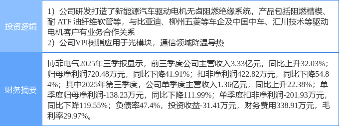 证券之星消息,博菲电气12月17日涨停收盘,收盘价37.46元。该股于9点33分涨停,2次打开涨停,截止收盘封单资金为5.08亿元,占其流通市值19.1%。
