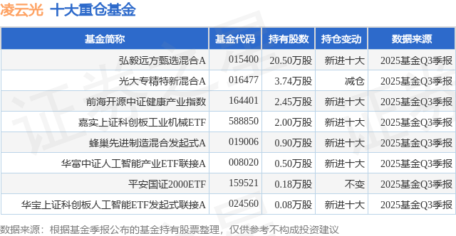 根据2025基金Q3季报公募基金重仓股数据,重仓该股的公募基金共8家,其中持有数量最多的公募基金为弘毅远方基金的弘毅远方甄选混合A。弘毅远方甄选混合A目前规模为0.17亿元,最新净值1.1838(12月16日),较上一交易日下跌1.97%。该公募基金现任基金经理为马佳 王哲宇。马佳在任的基金产品包括:弘毅远方民企领先100ETF,管理时间为2022年9月6日至今,期间收益率为23.26%;弘毅远方久盈混合A,管理时间为2023年6月2日至今,期间收益率为1.86%;弘毅远方北证50成份指数A,管理时间为2025年12月10日至今,期间收益率为1.81%。王哲宇在任的基金产品包括:弘毅远方汽车产业升级混合A,管理时间为2024年7月30日至今,期间收益率为63.68%;