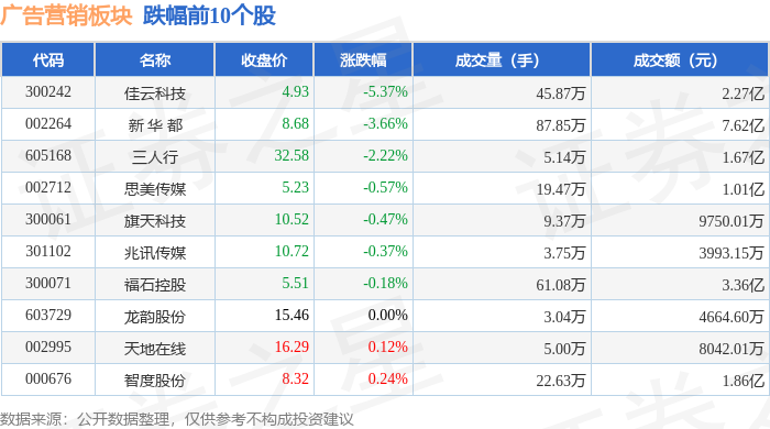 从资金流向上来看,当日广告营销板块主力资金净流入2.08亿元,游资资金净流出5787.35万元,散户资金净流出1.5亿元。广告营销板块个股资金流向见下表: