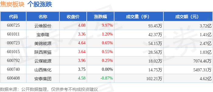 证券之星消息,12月17日焦炭板块较上一交易日上涨1.18%,云维股份领涨。当日上证指数报收于3870.28,上涨1.19%。深证成指报收于13224.51,上涨2.4%。焦炭板块个股涨跌见下表: