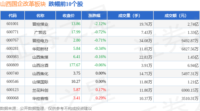 从资金流向上来看,当日山西国企改革板块主力资金净流出7065.97万元,游资资金净流出6413.61万元,散户资金净流入1.35亿元。山西国企改革板块个股资金流向见下表: