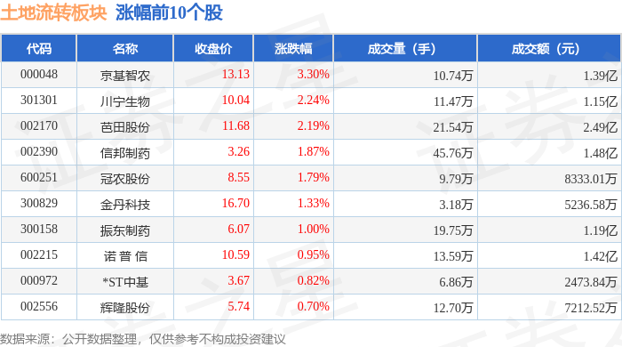 从资金流向上来看,当日土地流转板块主力资金净流出1.96亿元,游资资金净流出5032.21万元,散户资金净流入2.46亿元。土地流转板块个股资金流向见下表: