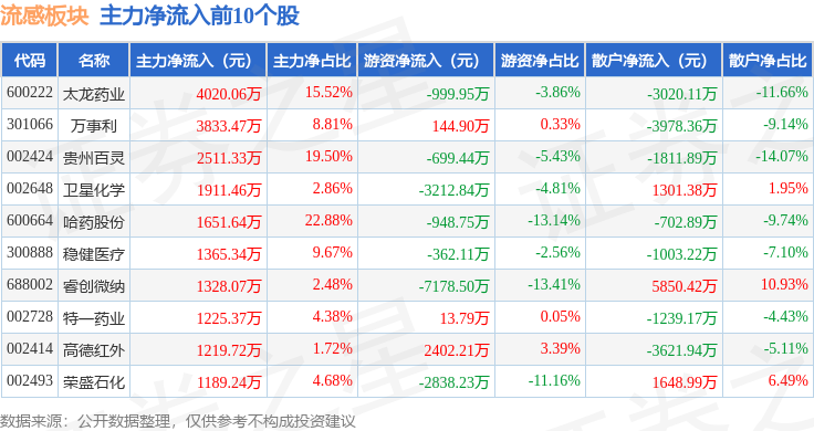 从资金流向上来看,当日流感板块主力资金净流出2.79亿元,游资资金净流出2.62亿元,散户资金净流入5.41亿元。流感板块个股资金流向见下表: