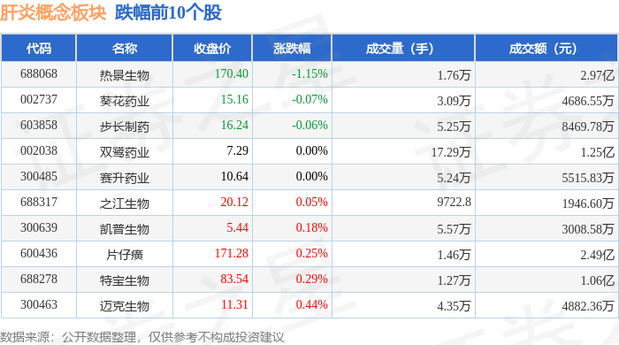 证券之星消息,12月17日肝炎概念板块较上一交易日上涨1.0%,ST人福领涨。当日上证指数报收于3870.28,上涨1.19%。深证成指报收于13224.51,上涨2.4%。肝炎概念板块个股涨跌见下表: