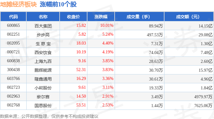 证券之星消息,12月17日地摊经济板块较上一交易日上涨0.39%,百大集团领涨。当日上证指数报收于3870.28,上涨1.19%。深证成指报收于13224.51,上涨2.4%。地摊经济板块个股涨跌见下表: