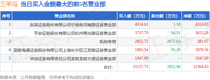 证券之星消息,沪深交易所2025年12月17日公布的交易公开信息显示,三羊马(001317)因日换手率达到20%的前5只证券登上龙虎榜。此次是近5个交易日内第2次上榜。