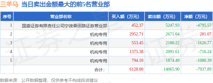 从龙虎榜公布的当日买卖数据来看,机构合计净卖出3142.33万元。章盟主、宁波桑田路等知名游资榜上有名。(知名游资章盟主一般指国泰海通证券股份有限公司上海长宁区江苏路证券营业部席位、知名游资宁波桑田路一般指国盛证券有限责任公司宁波桑田路证券营业部席位,根据市场资料整理,仅供参考)
