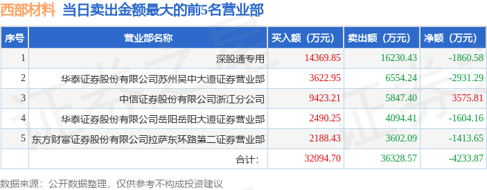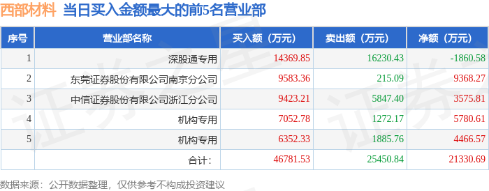 证券之星消息,沪深交易所2025年12月17日公布的交易公开信息显示,西部材料(002149)因日振幅值达到15%的前5只证券登上龙虎榜。此次是近5个交易日内第3次上榜。