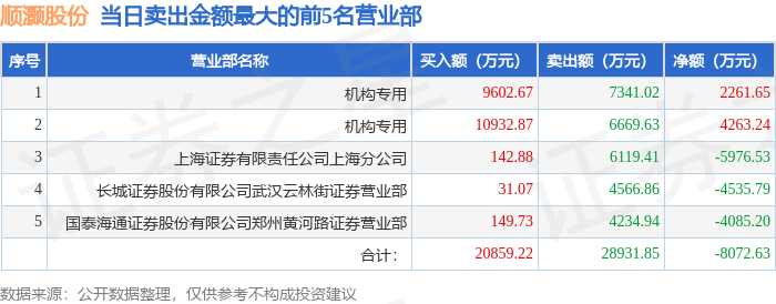 证券之星消息,沪深交易所2025年12月17日公布的交易公开信息显示,顺灏股份(002565)因日跌幅偏离值达到7%的前5只证券登上龙虎榜。此次是近5个交易日内第4次上榜。