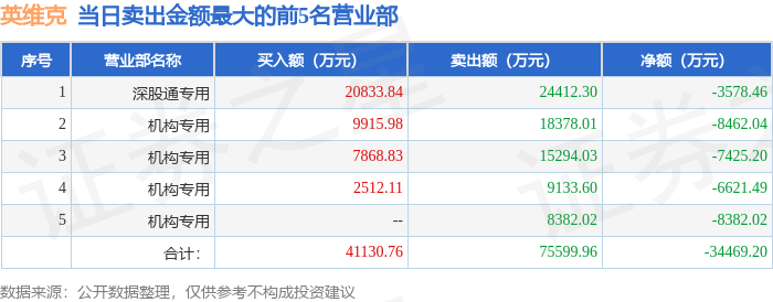 从龙虎榜公布的当日买卖数据来看,机构合计净卖出2.2亿元,北向资金合计净卖出3578.46万元。