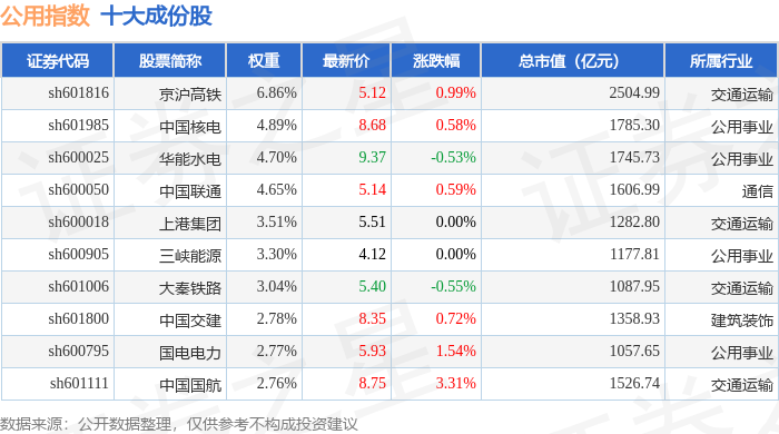 资金流向方面,公用指数(000007)成份股当日主力资金净流出合计8348.04万元,游资资金净流出合计4.05亿元,散户资金净流入合计4.89亿元。成份股资金流向详情见下表: