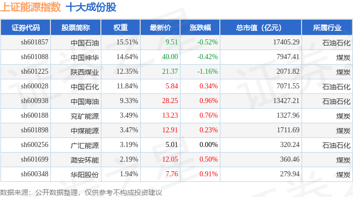 证券之星消息,12月17日,上证能源(000032)指数报收于1893.44点,跌0.07%,成交77.74亿元,换手率0.26%。当日该指数成份股中,上涨的有17家,中曼石油以2.99%的涨幅领涨,下跌的有8家,晋控煤业以2.12%的跌幅领跌。