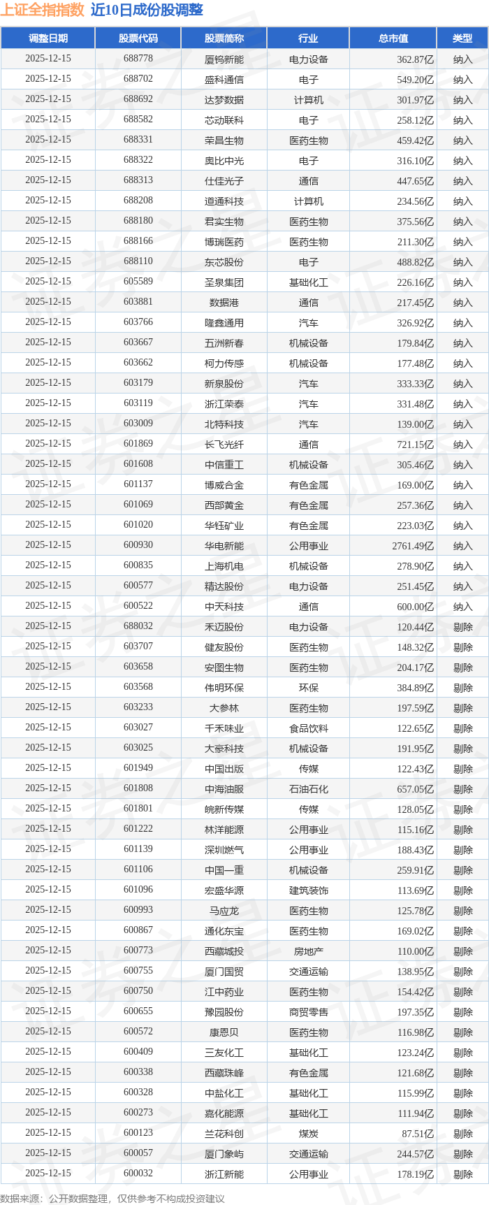 上证全指(000047)指数十大成份股详情如下: