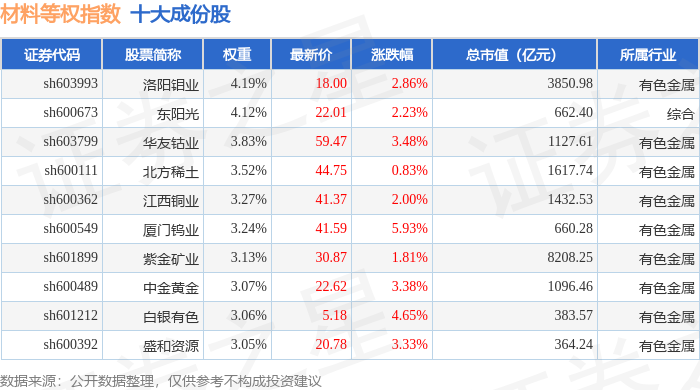 证券之星消息,12月17日,材料等权(000071)指数报收于4523.77点,涨2.57%,成交497.95亿元,换手率1.15%。当日该指数成份股中,上涨的有48家,厦门钨业以5.93%的涨幅领涨,下跌的有1家,彤程新材以0.68%的跌幅领跌。