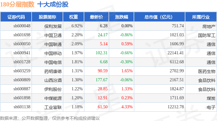 资金流向方面,180分层(000093)指数成份股当日主力资金净流入合计32.26亿元,游资资金净流出合计32.92亿元,散户资金净流入合计6569.0万元。成份股资金流向详情见下表: