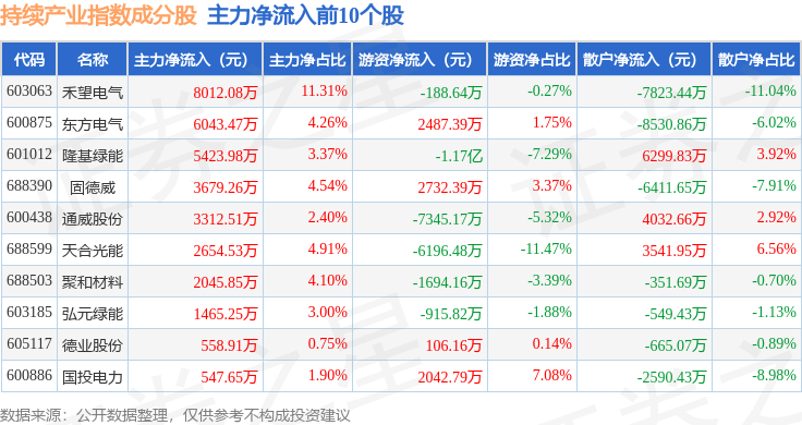 资金流向方面,持续产业(000114)指数成份股当日主力资金净流出合计2.67亿元,游资资金净流出合计1.75亿元,散户资金净流入合计4.42亿元。成份股资金流向详情见下表: