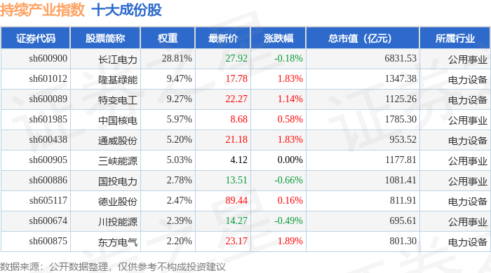 持续产业(000114)指数十大成份股详情如下: