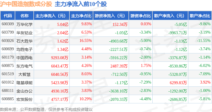 资金流向方面,沪中国造(000161)指数成份股当日主力资金净流出合计27.79亿元,游资资金净流出合计5.02亿元,散户资金净流入合计32.81亿元。成份股资金流向详情见下表: