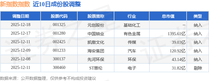 近10日内新指数(399100)成份股做了调整,新纳入了5只股票,剔除了1只股票。