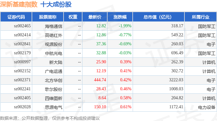 深新基建(399274)指数十大成份股详情如下: