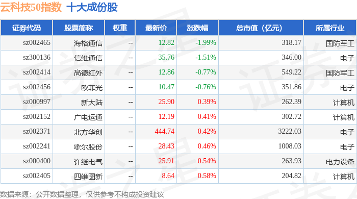 云科技50(399279)指数十大成份股详情如下: