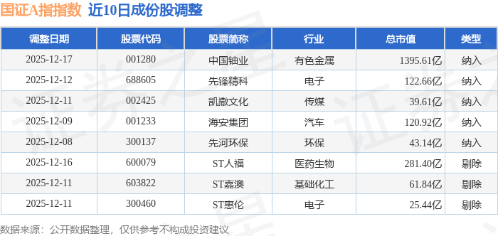 近10日内国证A指(399317)指数成份股做了调整,新纳入了5只股票,剔除了3只股票。