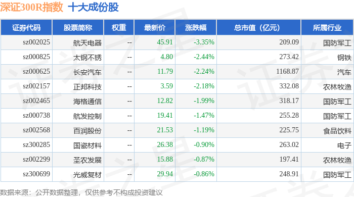 证券之星消息,12月17日,深证300R(399344)指数报收于7386.14点,涨2.5%,成交3629.19亿元,换手率1.42%。当日该指数成份股中,上涨的有263家,美年健康以10.06%的涨幅领涨,下跌的有32家,航天电器以3.35%的跌幅领跌。