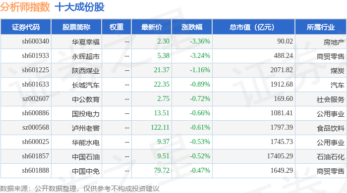 分析师指数(399354)十大成份股详情如下: