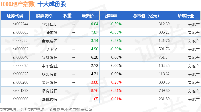 近10日内1000地产(399367)指数成份股做了调整,剔除了2只股票。