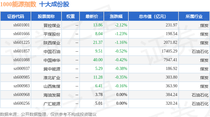 近10日内1000能源(399381)指数成份股做了调整,剔除了1只股票。