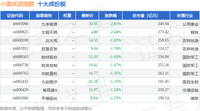 小盘低波(399408)指数十大成份股详情如下: