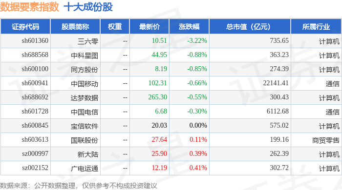 资金流向方面,数据要素(399418)指数成份股当日主力资金净流入合计3.87亿元,游资资金净流出合计10.43亿元,散户资金净流入合计6.56亿元。成份股资金流向详情见下表: