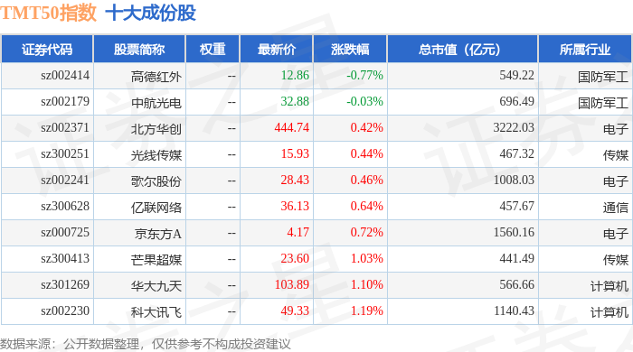 TMT50(399610)指数十大成份股详情如下:
