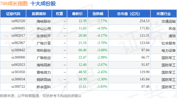 700成长(399628)指数十大成份股详情如下: