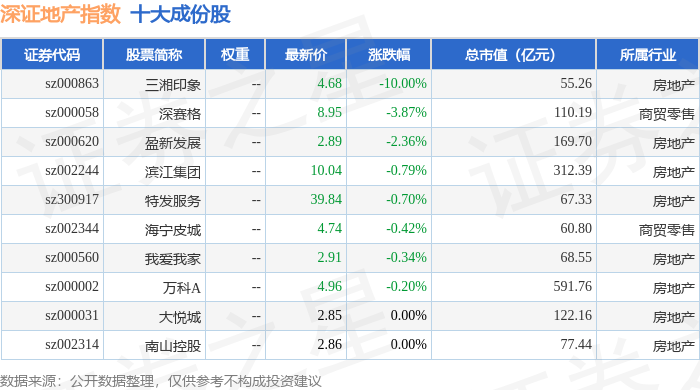 深证地产(399637)指数十大成份股详情如下: