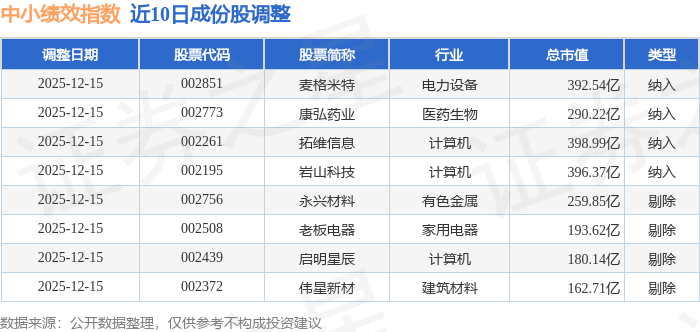 近10日内中小绩效(399658)指数成份股做了调整,新纳入了4只股票,剔除了4只股票。