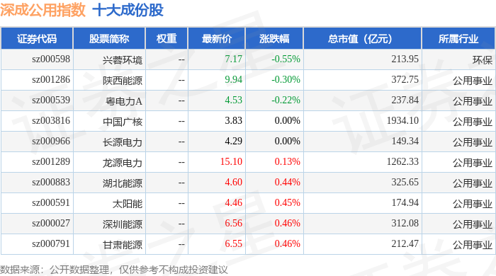深成公用(399689)指数十大成份股详情如下:
