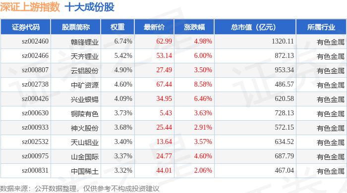 证券之星消息,12月17日,深证上游(399704)指数报收于6352.17点,涨3.96%,成交559.93亿元,换手率2.56%。当日该指数成份股中,上涨的有47家,盛新锂能以10.01%的涨幅领涨,下跌的有3家,东华能源以0.75%的跌幅领跌。