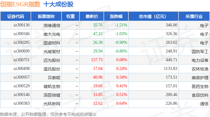 创指ESGR(470028)指数十大成份股详情如下: