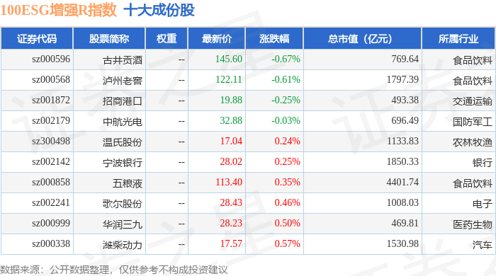 近10日内100ESG增强R(470033)指数成份股做了调整,新纳入了6只股票,剔除了6只股票。