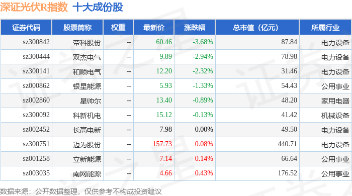 近10日内深证光伏R(470035)指数成份股做了调整,新纳入了5只股票,剔除了6只股票。