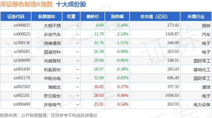 深证绿色制造R(470069)指数十大成份股详情如下: