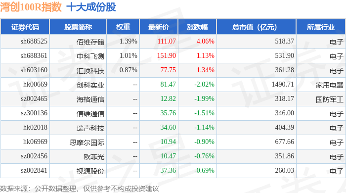 近10日内湾创100R(480001)指数成份股做了调整,剔除了1只股票。